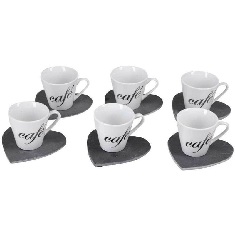 Goditi un buonissimo caffe con le persone che ami con questo bellissimo servizio da 6 tazzine con piattino. Questo bellissimo set è formato da 6 tazzine realizzate interamente in ceramica di altissima qualità dalla forma elegante e raffinata in un elegantissimo colore bianco decorata con una scritta caffe in colore nero, inoltre ogni tazzina è accompagnata da un bellissimo piattino in ardesia a forma di cuore che crea un eccezionale contrasto con il bianco della tazzina rendendo questo magnifico set davvero unico. Il set è composto da: 6 x tazzine 6 x piattini Dal design moderno e raffinato questo bellissimo set renderà le tue pause caffè davvero uniche. SPECIFICHE PRODOTTO: Marca: Bakaji Set composto da: 6 tazzine + 6 piattini Materiale: Ceramica e Ardesia Colore: Bianco e grigio Design moderno e raffinato CONTENUTO DELLA CONFEZIONE: 1 x Servizio Set 6 Tazzine da Caffe Tazzina in Ceramica con Piattino Cuore Ardesia