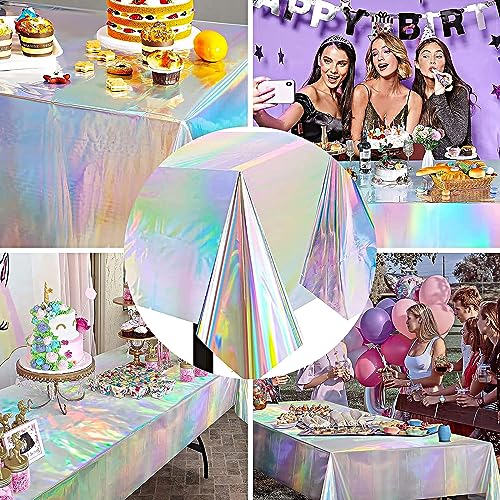 Confezione da 4 Tovaglie per Feste Tovaglie di Plastica Iridescenti Lucide 54"x108" Tovaglia Rettangolare Impermeabile per Bambini Tovaglia in Alluminio Decorazione per Feste di Compleanno Iridescenti
