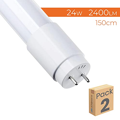 Confezione da 2 Tubo LED 150cm 24W, Colore Bianco Freddo (6500K), 2400 Lumen, Standard T8 G13, Started LED Incluso