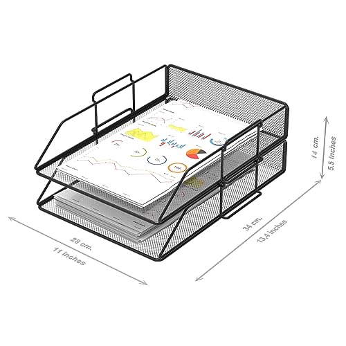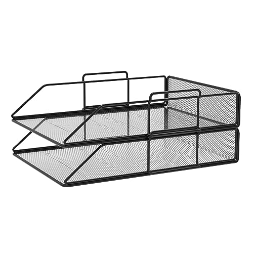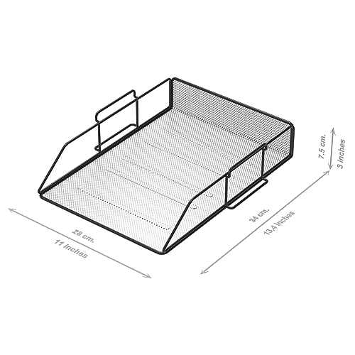 Confezione da 2 Vassoi Portadocumenti in Maglia Metallica Formato A4 Nero. Organizzatore Scrivania, Cassettiera Scrivania, Archivi Ufficio, Accessori Scrivania, Rivistero, Classificatore Documenti