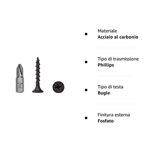 Confezione da 500 viti in acciaio al carbonio fosfato nero, 3,5 x 25 mm, con testa svasata a croce Phillips, per cartongesso, legno e truciolato (500, 3,5 x 25 mm)