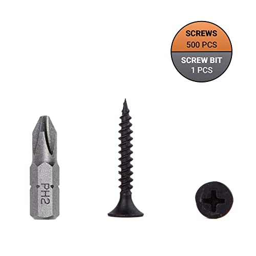 Confezione da 500 viti per cartongesso in acciaio al carbonio fosfato nero, 3,5 x 25 mm, filettatura fine, con testa Phillips, per il fissaggio di cartongesso (500, 3,5 x 25 mm)