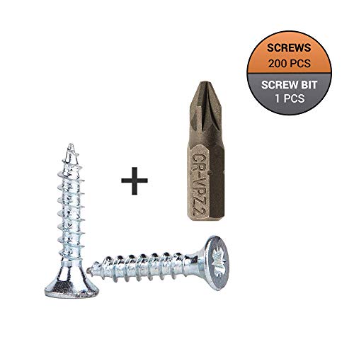 Contenuto della confezione: 200 pezzi. Dimensioni: 4,0 mm x 20 mm. Tutte le viti sono completamente filettate. 1 punta per cacciavite Pozidriv inclusa.