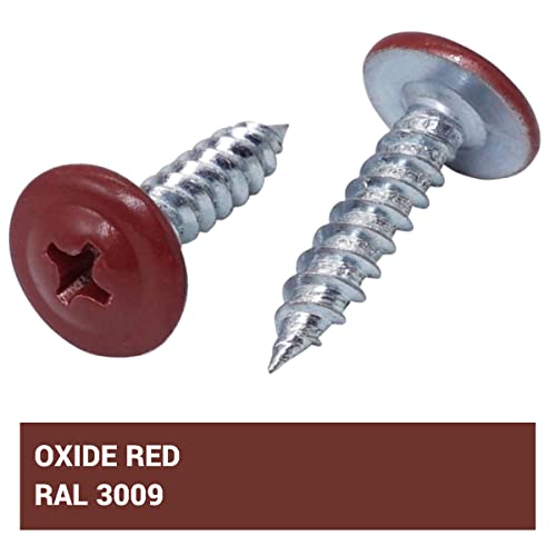 Confezione da 400 viti per legno verniciate, 4,2 x 19 mm, viti autofilettanti in metallo, testa a capriata modificata Phillips, testa wafer (400, rosso ossido RAL 3009)