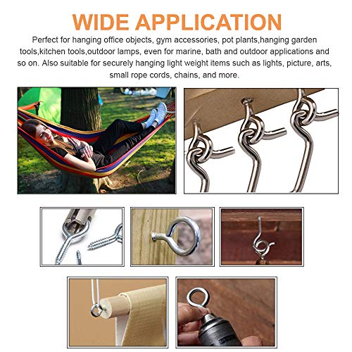 Ampia gamma di utilizzi: generalmente utilizzate per fissare cavi, catene e corde su superfici in cemento e legno. Perfette per appendere oggetti in ufficio, accessori per la palestra, piante in vaso, attrezzi da giardino, utensili da cucina, lampade da esterni e anche per uso nautico, in bagno, all'aperto, etc. Perfette per appendere in modo sicuro oggetti leggeri come lampade, quadri, oggetti artistici, cordini, catenine e molto altro ancora.