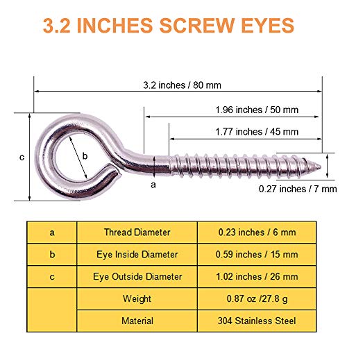 Confezione da 12 viti a occhiello, in acciaio inox 304, resistenti, per sedia a dondolo, ambienti interni ed esterni, autofilettanti, 8,1 cm