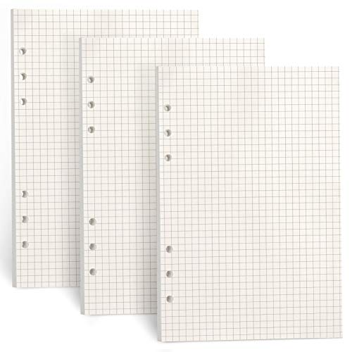 FYY 3 confezioni di carta bianca formato A5 a quadretti 135 fogli (270 pagine) per quaderni di ricarica per Filofax A5 a 6 anelli adatti per appunti diari schizzi fai da te bullet journal pittura