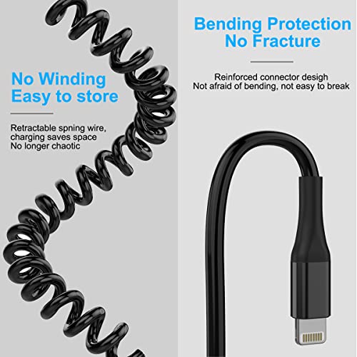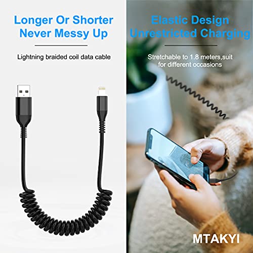 ☀【Coiled Lightning Design】:design a molla intrecciata in nylon, la lunghezza non è disordinata, cavo a spirale per caricabatterie per auto iPhone (cavo dati da USB a lightning), la soluzione perfetta per tenerti pulito, in ordine e lontano dai fili. È facile da riporre e può essere ampliato alla lunghezza richiesta, se necessario. Niente più stupidi cavi lunghi, niente pasticci penzolanti, niente cavi attorcigliati.