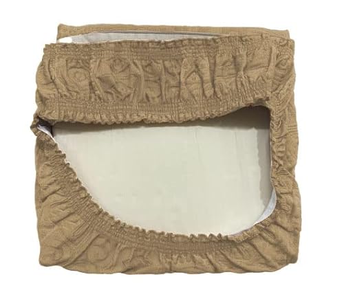 Confezioni Giuliana - Set cuscini coprisedia con fascia elastica jacquard ETNICO pouff sedia cucina Made in italy - Tortora, 2 Cuscini