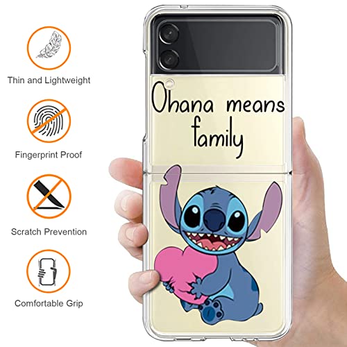 3 Confezioni - Stitch Cover per Samsung Galaxy Z Flip 3 5G 6.3", Cartoni Kawaii Anime con Disegni Custodia Per Samsung Z Flip 3 Ohana Cover Donna Transparente Silicone Animati Case