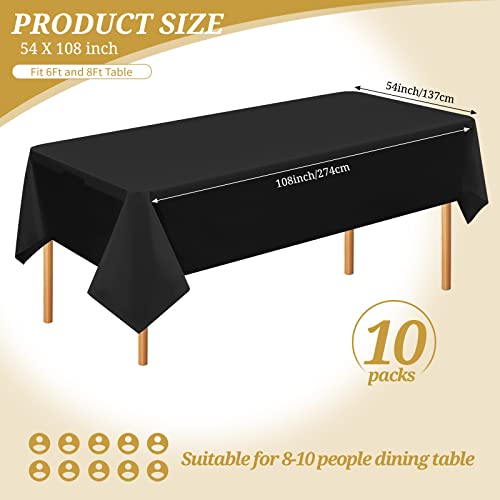 【Set di tovaglie usa e getta】: il pacchetto include 10 pezzi Tovaglia di plastica nera La tovaglia misura 54 pollici X 108 pollici, le tovaglie di plastica rettangolari copriranno qualsiasi tavolo fino a 8 piedi, aggiungendo eleganza alla moda alla tua festa.