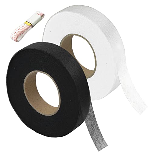 2 confezioni da 70 yards 20 mm Wonder Web Nastro con orlo ultra sottile invisibile con morbido metro a nastro per stirare orli dei pantaloni, polsini, tende e biancheria da letto, bianco e nero