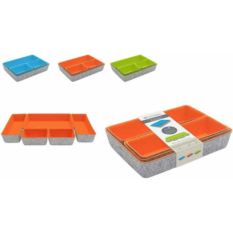 Se vuoi dare un tocco d'originalità alla tua casa, con Set di Cestini Confortime Feltro 5 Pezzi 27,5 x 20 x 5,3 cm potrai farlo. Dimensioni appross.: 27,5 x 20 x 5,3 cm Numero di pezzi: 5 Pezzi Materiale: Feltro Tipo: Organizzatori