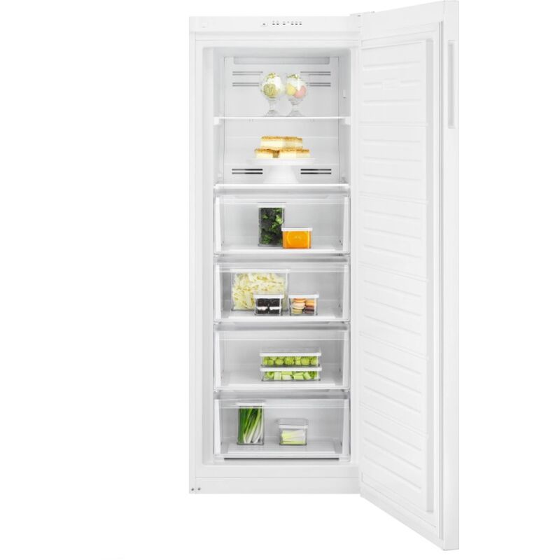 Congelatore verticale Electrolux LUT1NE32W. Niente più gelo: La tecnologia No Frost impedisce la formazione di brina nel congelatore. Non avrai mai più bisogno di scongelarlo. Più igienico e facile da pulire, ti offre più spazio per i tuoi ingredienti preferiti. Non più gelo, per sempre: La tecnologia NoFrost previene la formazione di brina nel congelatore. Non avrai mai più bisogno di scongelarlo. È più igienico e più facile da pulire, offrendo allo stesso tempo più spazio per i tuoi ingredienti preferiti. Scegli le impostazioni del congelatore con il controllo elettronico. I tasti elettronici ti permettono di regolare la temperatura interna del tuo congelatore, mentre lo schermo LCD visualizza informazioni precise in ogni momento. Tipo di prodotto: congelatore verticale. Tipo di costruzione: autoportante. Volume totale (L): 226. Classe di efficienza energetica: E. Emissioni di rumore aereo (dB(A)): 39. Classe di emissione acustica in aria: C. Contro. consumo energetico annuo