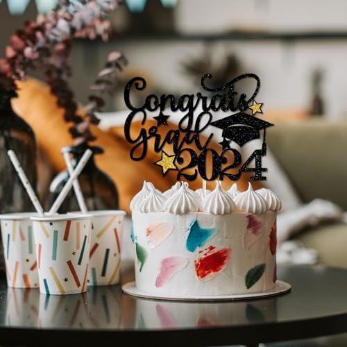 Congrats Grad 2023 Cake Topper Nero e Oro Glitter Graduation Topper Torta - Cap Star Cake Picks per decorazioni 2023