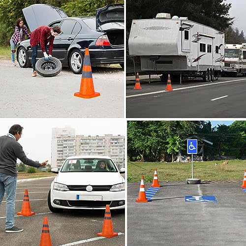 2 COLLEZIONI RIFLETTIVE - Con 2 strisce riflettenti (4"&6"), i coni sono altamente visibili durante il giorno o la notte. Più adatto per l'uso in nebbia, pioggia, neve o altre condizioni difficili.