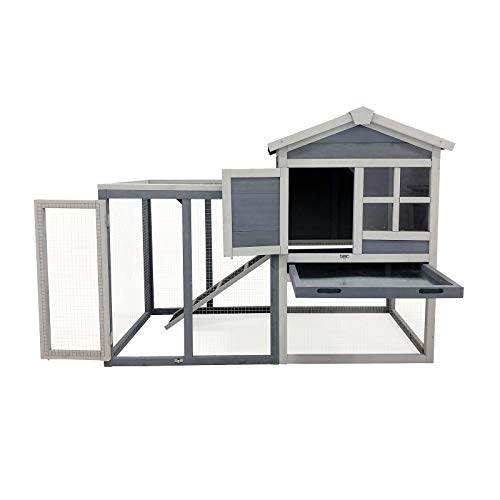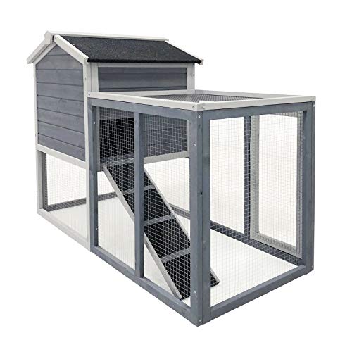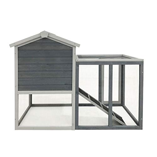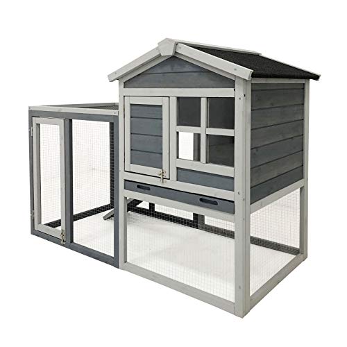 Conigliera con recinto esterno, rifugio rialzato grigio legno di abete
