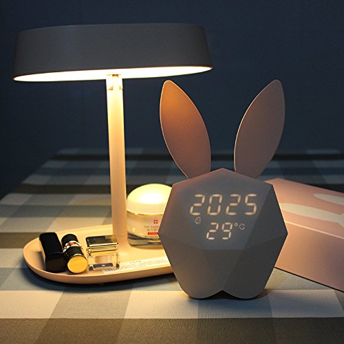 Coniglio Orologio Digitale Sveglia Luce Notturna Cartone Animato Elettronica Still Clock Regali di Natale per Bambini (Pink)