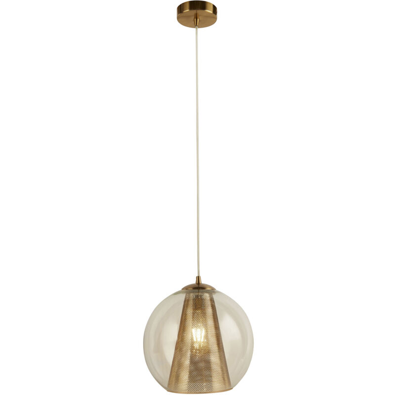 Collezione Conio DESIGN AUDACE Il design audace della lampada a sospensione Conio 1 è perfetto da aggiungere a una camera da letto contemporanea. Un paralume a sfera in vetro trasparente è completato da un design a forma di cono a rete e una finitura in ottone satinato. Lascia che la luce risplenda magnificamente attraverso questa sospensione moderna.