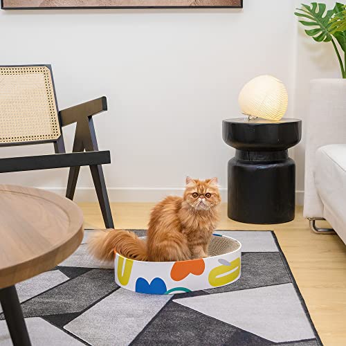 Design unico: il design ovale e concavo non solo si adatta alla colonna vertebrale del gatto, riducendo la pressione sulla colonna vertebrale del gattino quando si accoccola sul tiragraffi tappeto, ma il tiragraffi cartone offre anche una superficie curva più confortevole, consentendo agli adorabili amici di allungarsi e di prendere slancio dietro i suoi graffi.