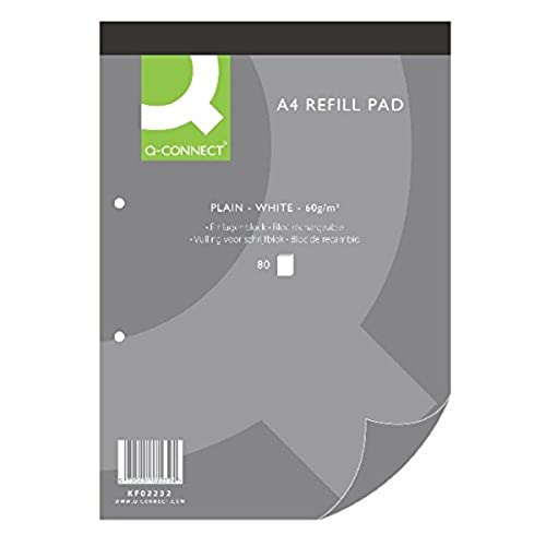 Q Connect - Ricarica di 80 fogli in formato A4 bianchi, con 2 fori laterali e rilegatura sul lato superiore