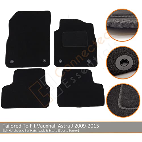 Connected Essentials 5005985, Tappetini Sonalizzati Realizzati su Misura, For Astra J MK6 (2010-), Deluxe, Nero (Black with Black Trim), 500g Carpet Thickness