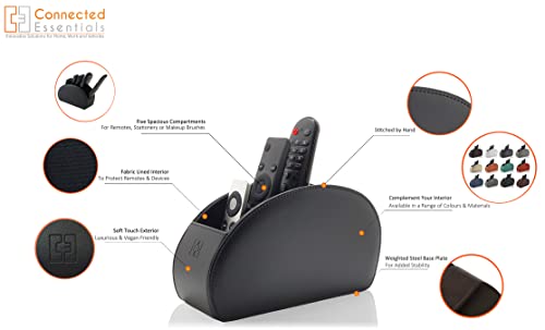 Connected Essentials - Contenitore per telecomando, con 5 scomparti, per telecomandi, DVD, Blu-Ray, colore: Nero