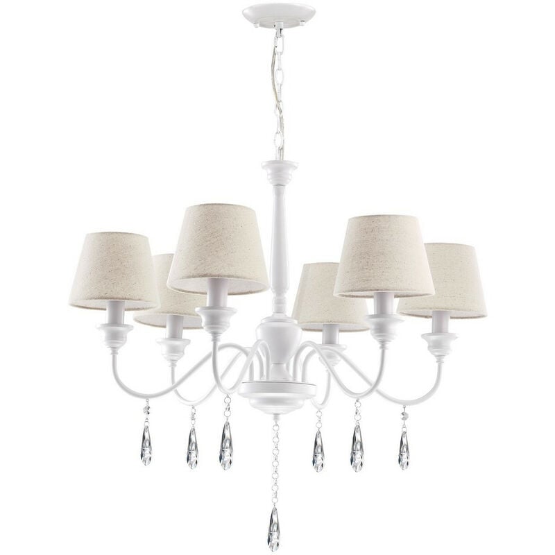 Merano Connecticut Lampadario a 6 Luci Multi Bracci con Paralumi in Metallo Bianco Opaco Panna, Cristalli LED E14 | Finitura: bianco, crema | Materiale: metallo, paralume, cristallo | Classificazione IP: IP20 | Altezza: 100 cm | Lunghezza: 73 cm | Larghezza: cm | Tipo di lampada: E14 | N. di lampade: 6 | Lampadina inclusa: No | Dimmerabile: No | Peso: 3,5 kg | Potenza (massima): 6x5W
