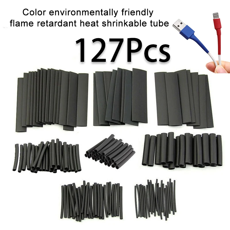 127 Pc Connection Electrical Wire Wrap Cable Waterproof Shrinkage 2:1 Heat Shrink Sleeving Tube Tube Assortment Kit Electrical