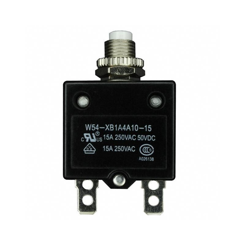 Interruttore a pannello magnetotermico Tensione di lavoro: 250Vac, 50Vdc Corrente di lavoro: 15Amp Configurazione dei contatti: SPST-NC Numero di poli: 1 Montaggio: per pannello Temperatura di lavoro: 0...60°C Uscita: per la saldatura Dimensione del foro di montaggio: 11,2 mm di diametro Capacità dielettrica: 1,5KVac Uso degli interruttori automatici: Applicazioni industriali Peso: 0,03Kg