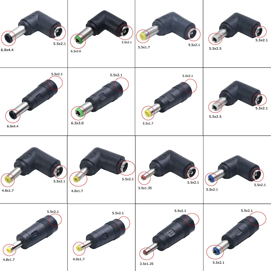 DC Connector 5.5x2.1mm Female to 6.0x4.4 5.5x2.5 5.5x1.7 4.8x1.7 4.0x1.7mm Male Converter Laptop Power Adapter 90/180 degree