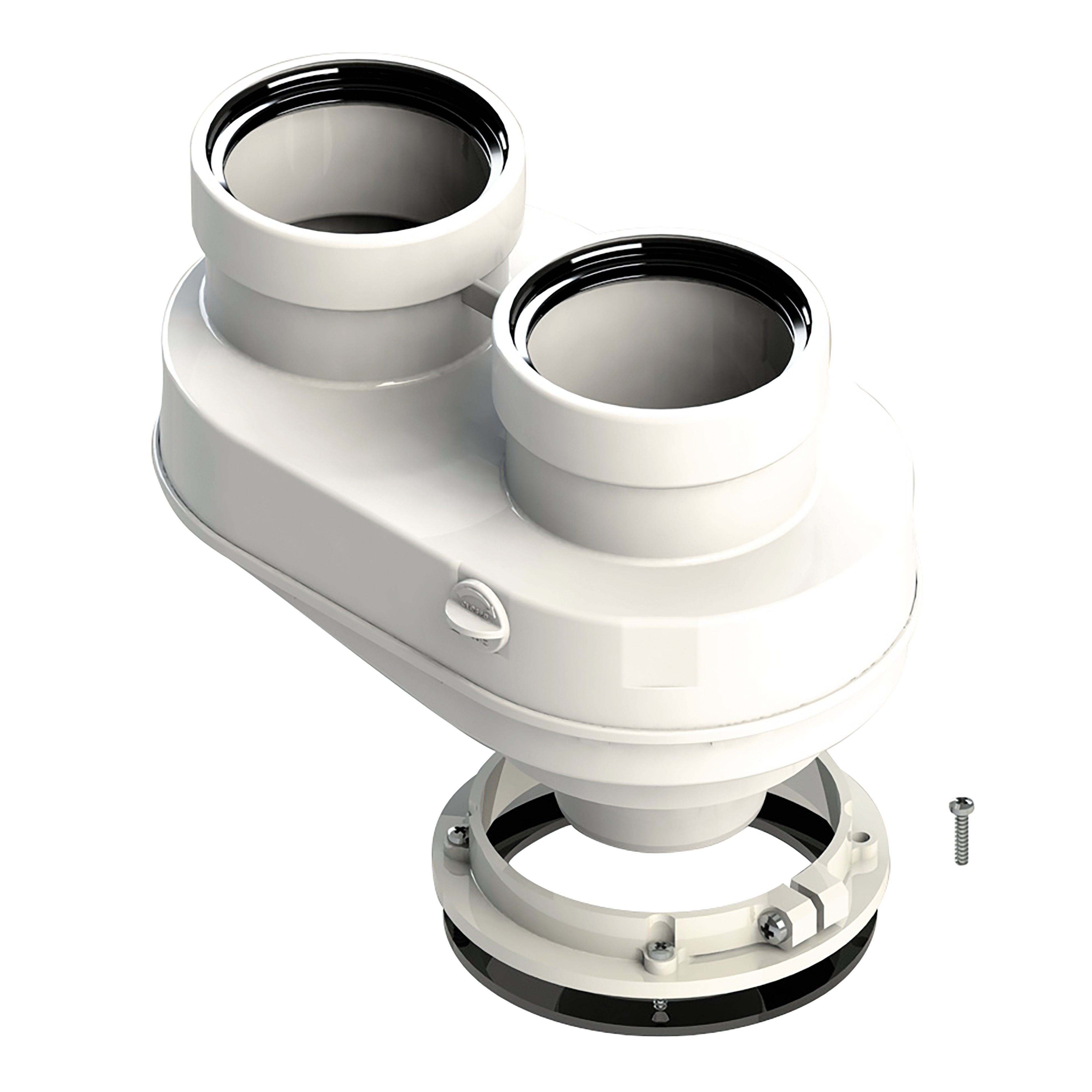Sdoppiatore per sistemi che necessitano di uno scarico sdoppiato per avere lunghezze degli scarichi fumi maggiori.