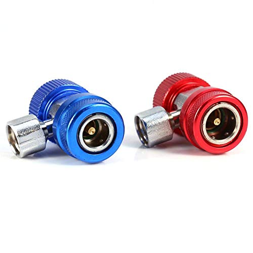 Dimensioni: è un set di 2 connettori rapidi.L'interfaccia dell'accoppiatore si adatta con la porta di servizio R134, svasatura maschio da 1/4 ". Raccordo laterale per set di spessori del collettore A / C (R-134A).