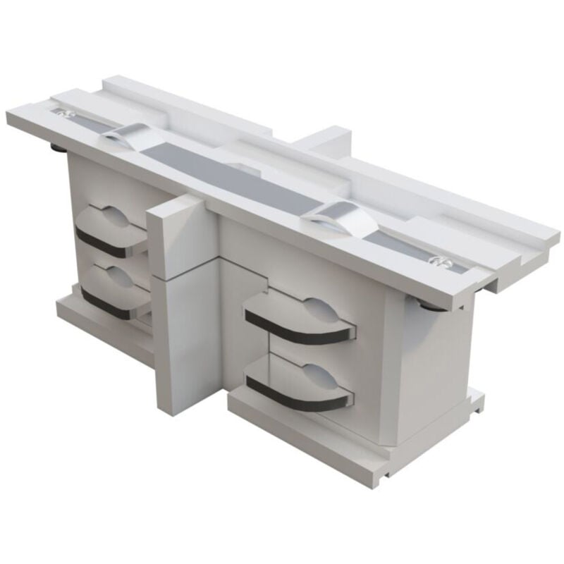 Collezione Accessories For Tracks Trinity CONNETTITI CON L'ESSENZIALE Il connettore per binario in plastica bianca è un componente essenziale del sistema di binari progettato per il montaggio a incasso. Questo tipo di connettore permette di collegare in modo sicuro ed efficiente i binari, assicurando un'adeguata continuità elettrica tra di essi.