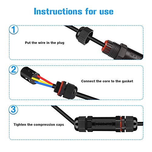 Materiale eccellente: il connettore è realizzato in materiale PC + PA66 ad alta resistenza, progettato per la casa, il giardino o la fattoria. Adatto per il collegamento rapido di illuminazione esterna e cablaggio esterno.