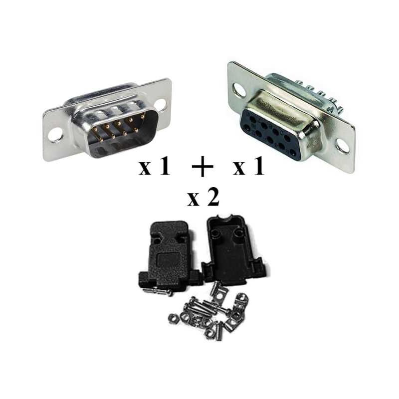 Codice ErreBi: 16177 Ogni kit comprende: - 1 Pz Connettore D-SUB DB9 Femmina a Saldare - 1 Pz Connettore D-SUB DB9 Mashio a Saldare - 2 Pz Calotta per Connettore vaschetta DB9 Scheda Tecnica Serie: D-SUB Amperaggio: 3A Colore: Nero Temperatura operativa: -55°C a +105°C Infiammabilità: 94V-0 Materiale del contatto: Lega di rame Montaggio: Sul cavo Genere: Maschio + Femmina Numero di poli: 9 Numero di file: 2 Passo: 2.77 mm Orientamento: Diritto (180°) Tipologia di prodotto: Kit Connettore