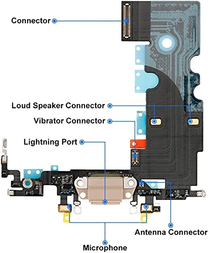 Connettore dock ricarica per iPhone 8 iPhone SE 2020 A1863 A1905 A1906, A2275 A2298 A2296 Oro Charger Port Presa di Ricarica Cavo Flessibile con Audio Jack,Microfono,Antenna di Ricambio,Cacciaviti