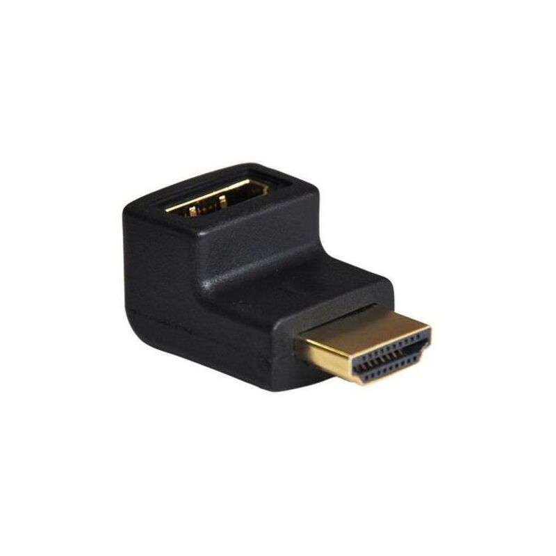 Adattatore HDMI. Connettore per collegamento cavi HDMI angolato.SPECIFICHE.Tipo de connessione: HDMI tipo A.Dimensioni esterne / Peso: 25x20x21 mm / 14 g