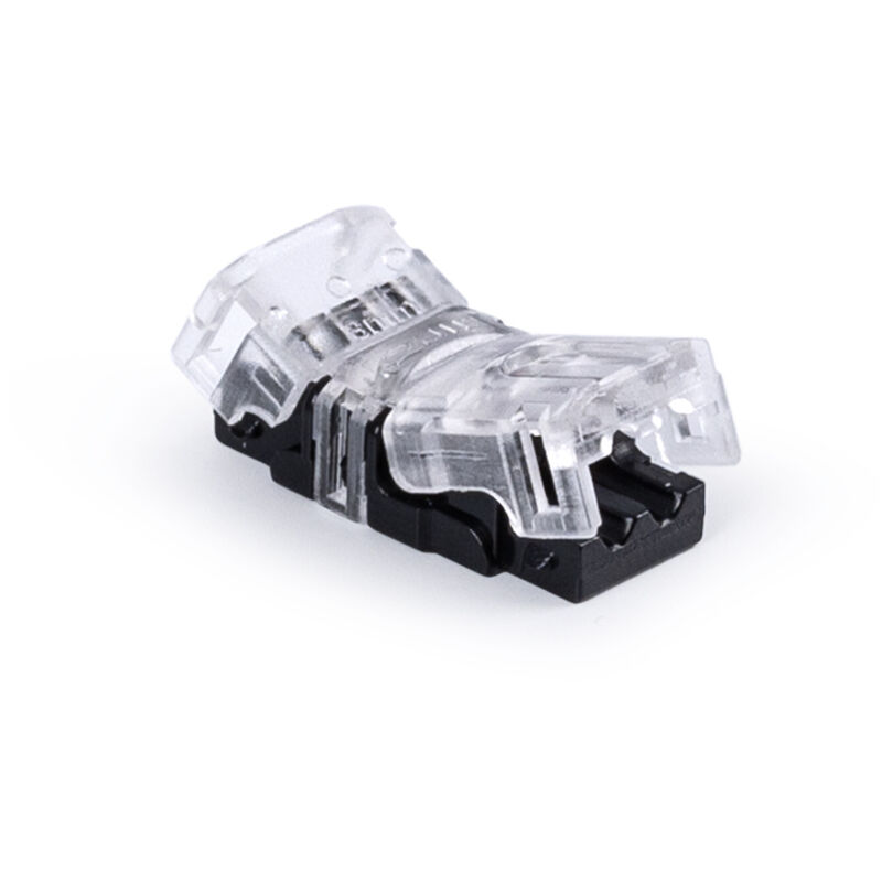 Connettore rapido Hippo per il collegamento di una striscia LED a un cavo. Adatto per strisce LED SMD monocolore con PCB da 8 mm. Protezione IP20. Gamma di tensione 3-24V.