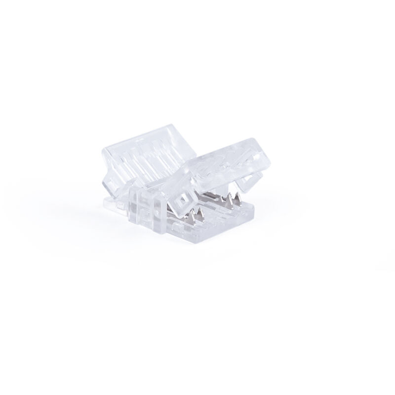 Connettore rapido Hippo per il collegamento di una striscia LED a un cavo. Adatto per strisce LED COB RGB con PCB da 10 mm. Protezione IP20. Gamma di tensione 3-24V.