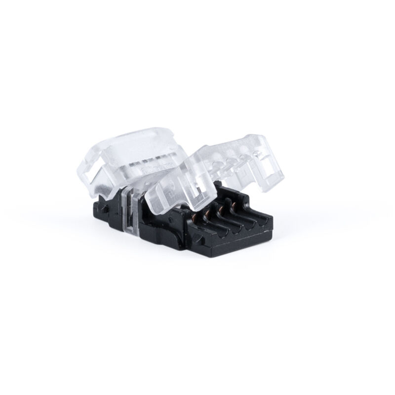 Connettore rapido Hippo per il collegamento di una striscia LED a un cavo. Adatto per strisce LED RGB SMD con PCB da 10 mm. Protezione IP20. Gamma di tensione 3-24V.