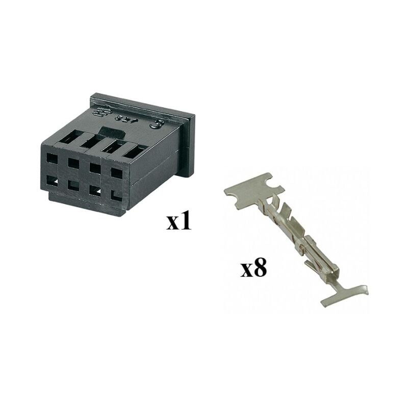Codice ErreBi: 25087 Produttore: Cross Reference TE/Connectivity Con il tuo acquisto sostieni l'associazione R.A.Y. Vendita al pezzo Ogni kit comprende: - 1 Pz - Connettore Modu 2 Femmina 4x2 Vie - 8 Pz - Terminale Modu 2 Femmina Scheda Tecnica Tipologia di prodotto: Kit Connettore Serie: Modu II Materiale: Plastica Colore: Nero Temperatura operativa: -40°C a +80°C Infiammabilità: 94V-1 Materiale del contatto: Bronzo fosforico Range del filo: 0.12 - 0.40 mmq Genere: Femmina Numero di poli: 8 Numero di file: 2 Passo: 2.54 mm Copertura del contatto: Stagno