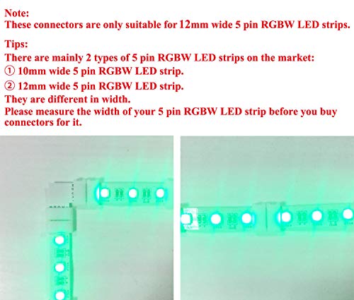 Connettore Striscia LED 5 pin per Striscia LED RGBW Larga 12 mm, Connettore Angolare Banda LED RGBW Connettore L Figura Nastro LED Connettore Angolo a LED Strip Adattatore Rapido