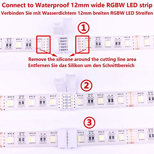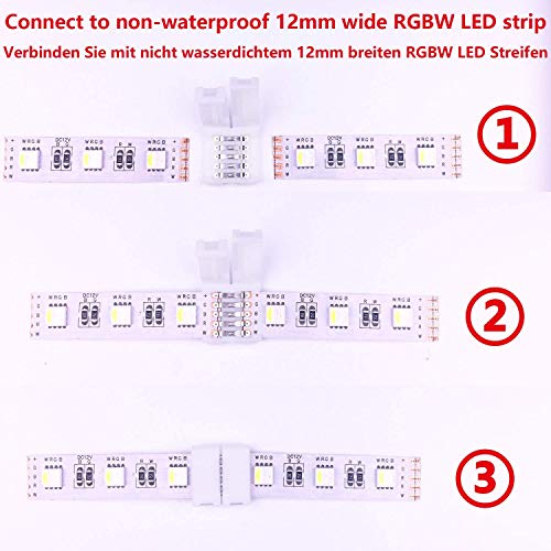 Compatibile con strisce LED RGBW a 5 pin sia impermeabili che non impermeabili da 12mm di larghezza.
