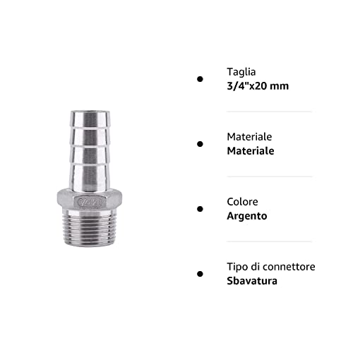 1 connettore connettore per tubo spinato a filettatura adattatore dfe coda di tubo in acciaio inossidabile SS304 1/8 "~ 3/4"(3/4 * 20mm)