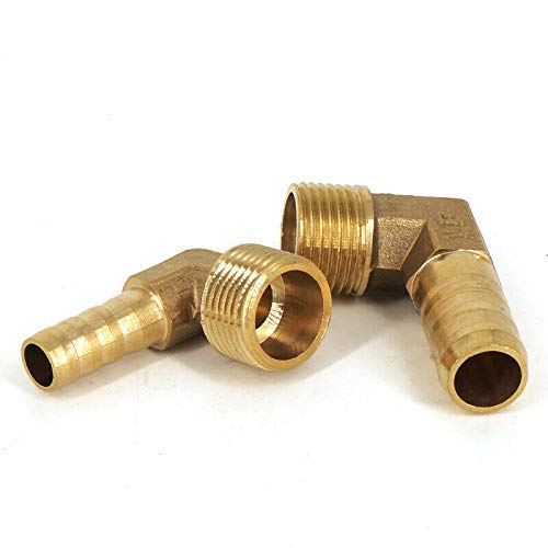 2 connettori ad angolo di 90 gradi con ardiglione, in ottone BSP per acqua e carburante (1/2" x 6 mm)
