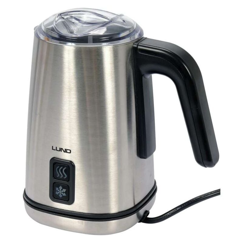 Dati tecnici: Simbolo: 68470 Serie: GRH Materiale custodia: acciaio inox 304 Peso: 1,4 kg Voltaggio: 220-240 V AC Potenza: 500 W Lunghezza cavo: 1 m Base antiscivolo: sì Frequenza: 50/60 Hz Classe di isolamento elettrico: I Funzioni: Montare il latte freddo | Calore per schiumare il latte | Retroilluminazione LED riscaldamento latte: SI Temperatura operativa max.: 65 (± 5) °C. Dimensioni esterne del dispositivo operativo: 192 x 124 x 208 mm. Capacità per montare la schiuma di latte: 0,16 l. Capacità per riscaldare il latte: 0,25 l. Montalatte LUND con una potenza di 500 W e tre funzioni automatiche: schiuma fredda, schiuma calda e riscaldamento del latte. La capacità massima di schiumatura è di 160 ml e la capacità massima di riscaldamento del latte è di 250 ml. L'alloggiamento del dispositivo è realizzato in acciaio inossidabile estetico e resistente. INFORMAZIONI: Potenza: 500 W, 220-240 V, 50/60 Hz. 3 funzioni automatiche: Schiuma di latte freddo - schiuma fredda delicata, ideale