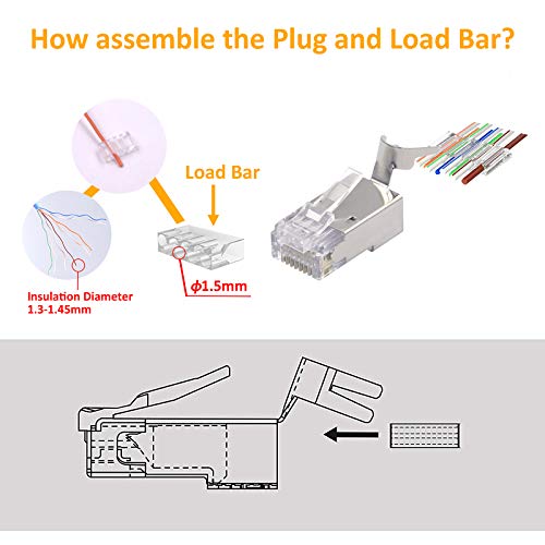 VCE Connettori RJ45 Cat6A Cat7, Plug RJ45 Schermato con Guida di Inserimento e Protezione Antipiega, 20 Pezzi
