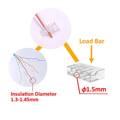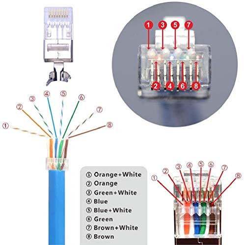 NOTA: plug rj45 cat 7 possono essere utilizzate per cavi di rete CAT7, CAT6A. Ma va notato che il diametro di un singolo nucleo dovrebbe essere 1,35-1,45 mm. I fili troppo sottili possono scivolare attraverso l'ausilio di filettatura e causare una connessione non riuscita. Il diametro esterno dell'intero cavo di rete non deve superare gli 8 mm