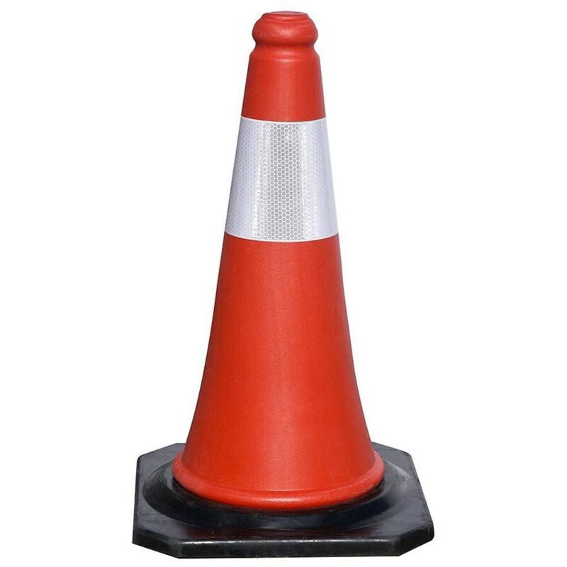 Cono di segnalazione con base in gomma. - Misura: 50 cm. - Con banda riflettente. - Base in gomma per una maggiore stabilità. - Articolo noto anche come cono da lavoro, cono di sosta, cono stradale, cono di sicurezza .